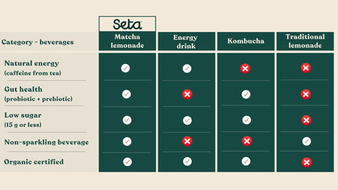 Matcha lemonade with green tea, probiotics and prebiotics.
